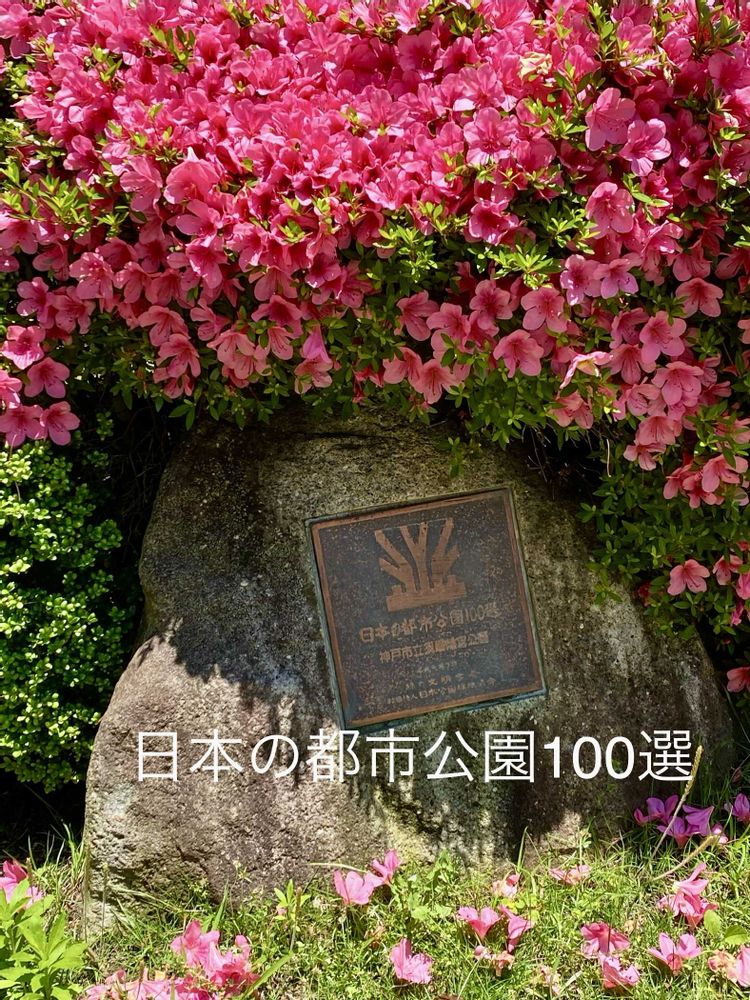 先日須磨離宮公園へ行った時、帰りにサツキが綺麗に咲いていたので 見ると岩に『日本の都市公園』のプレートがありました。