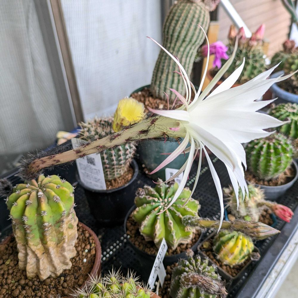 2015年にサボテンが花咲くことを知り、自分で買ってきたダイソーサボテンが次の年に咲いたのをきっかけに、どはまりしてます😅