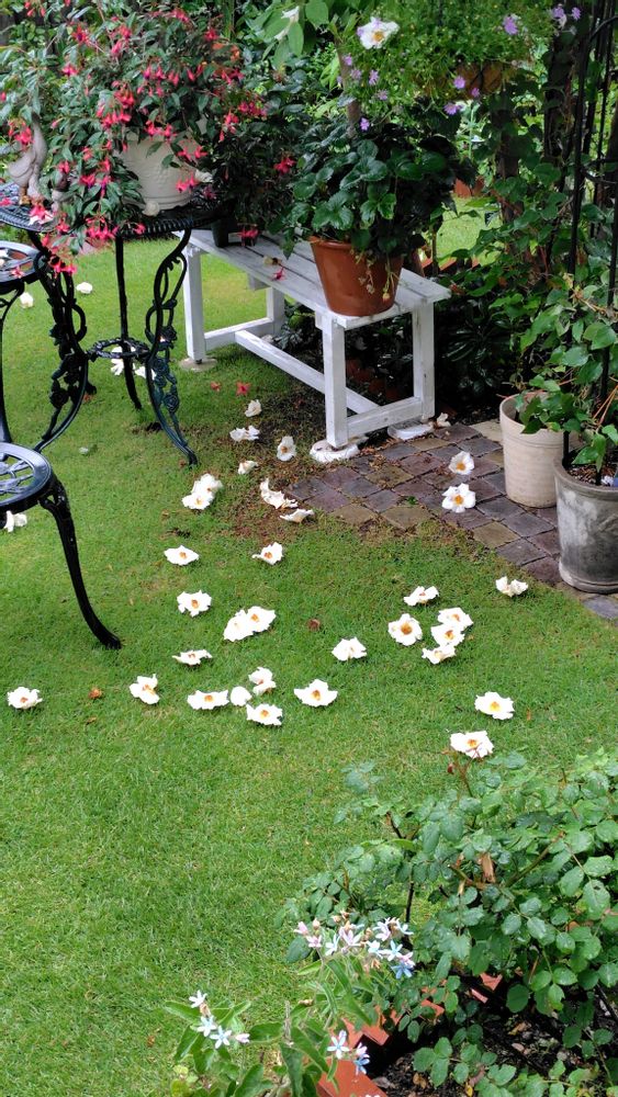 お花は、賞味期限が短くて、すぐに茶色になり、ばばっちくなるよ😅だから、雨間みて、せっせと拾います🦵🦵💪