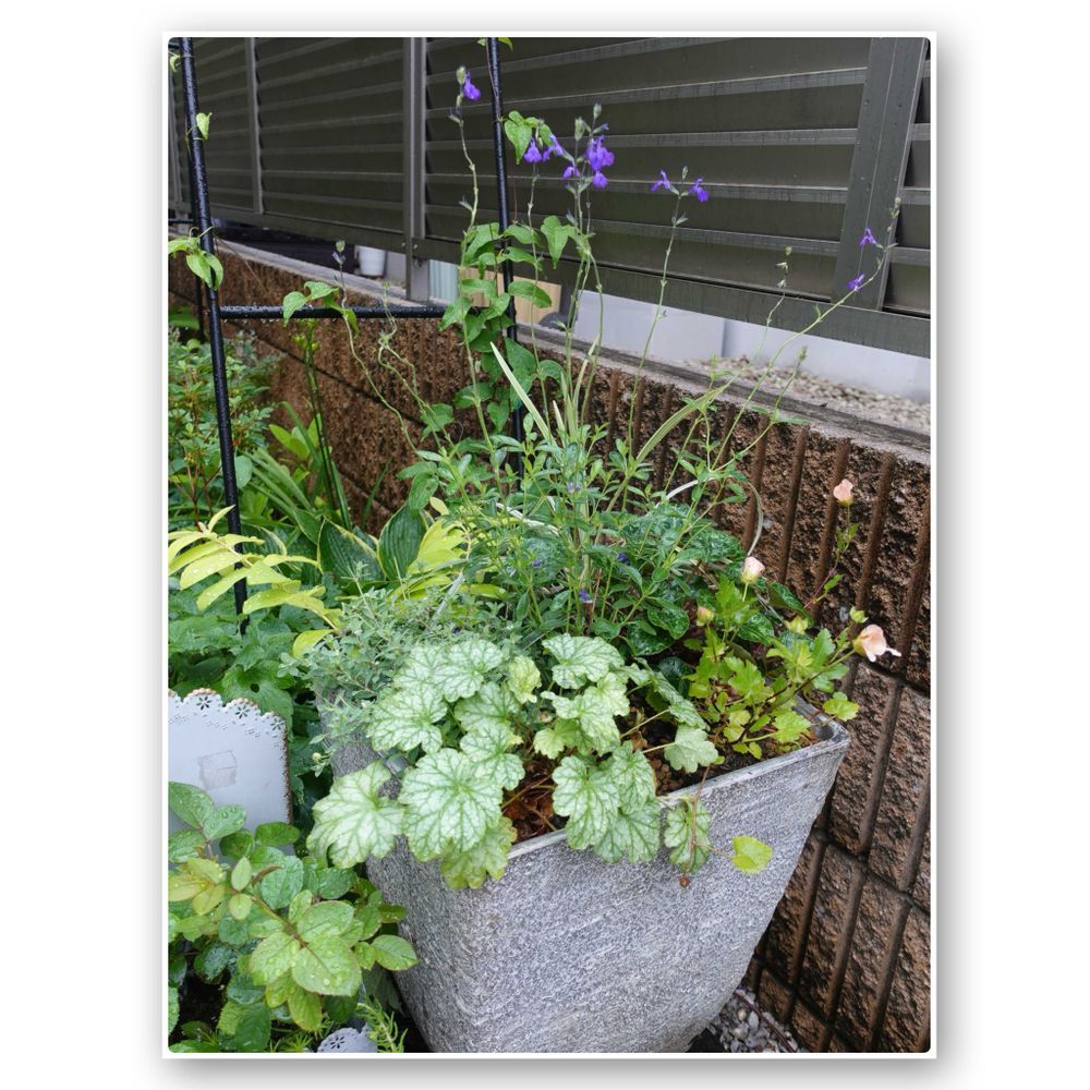 少し前に、庭の植物と買い足した植物で多年草の寄せ植えを作りました🌿
