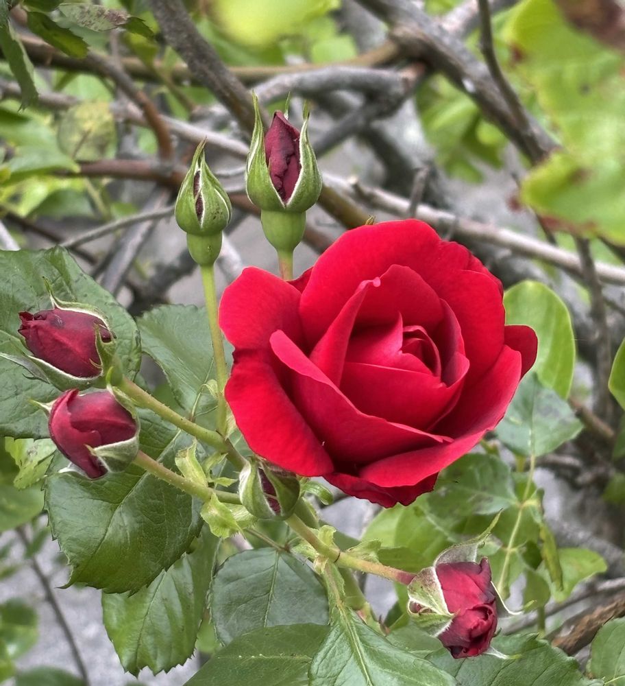 友人宅のバルコニーまで伸びていた真紅のバラ🌹