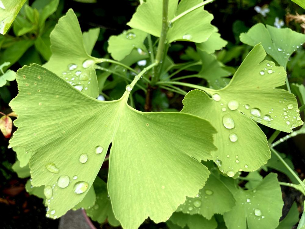 イチョウの葉っぱの上にも水滴が💧💧💧🍃