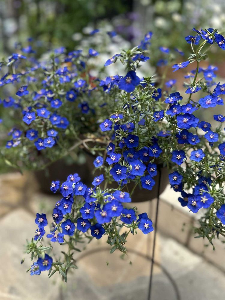とっても綺麗なブルーで5月初旬から次々花が咲き茎を伸ばしてくるのでいい感じに垂れ下がってます🥰