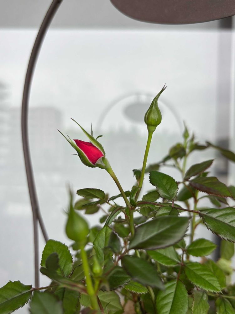 ③赤いミニ薔薇にまた蕾ついて来ました🌹