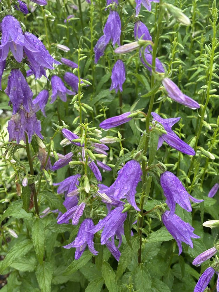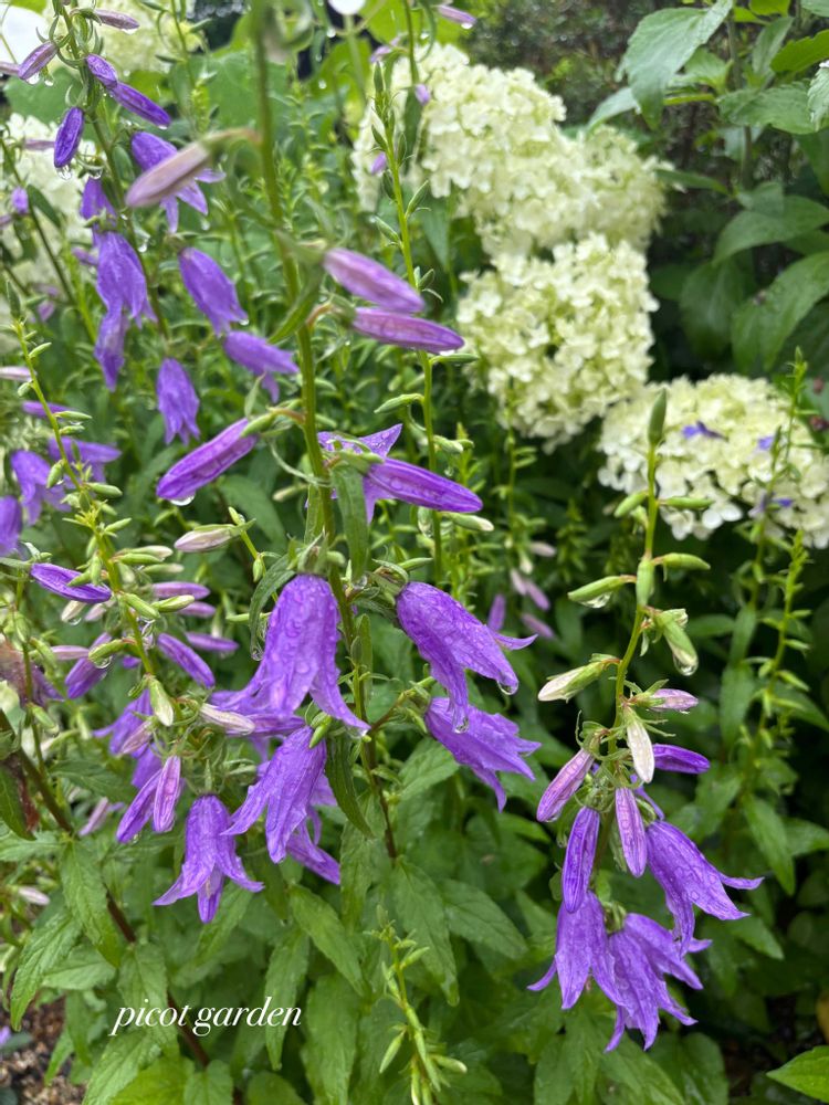 ☔️でアナベルはうな垂れていますが、ハタザオキキョウはシャキッと突っ立てます😃