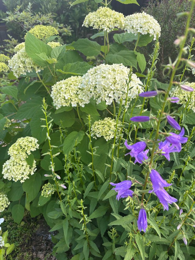 💜🤍ハタザオキキョウとアナベル🤍💜