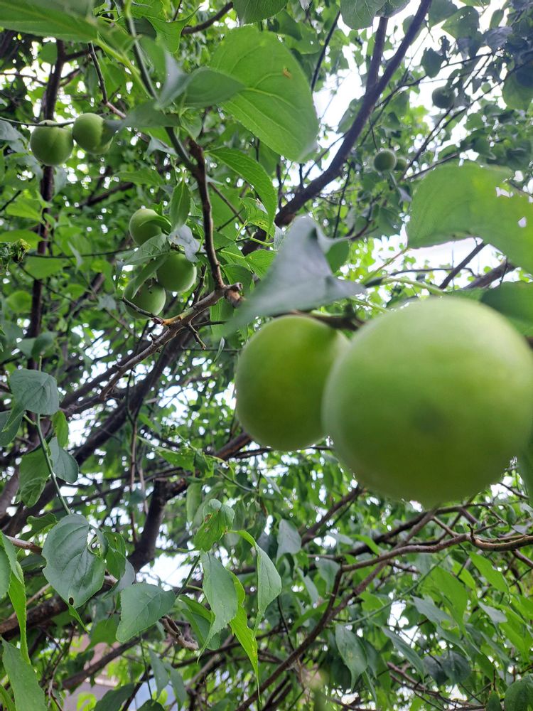 いままで、ほとんど実を付けたことのないお庭の梅の木に、大きな梅が生りました