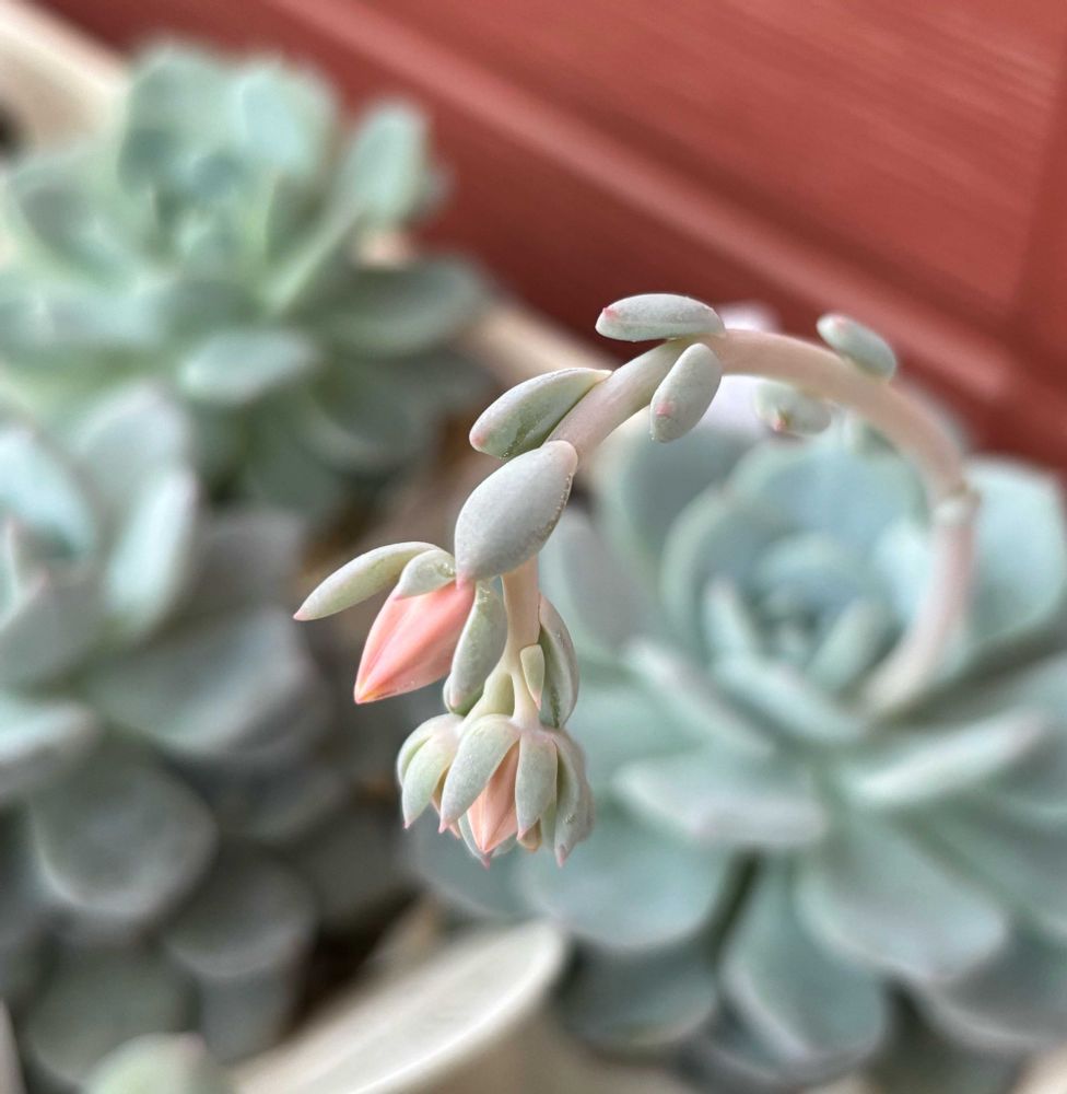 エケベリア(ベルギーローズ×クラウドモンロー)の花の蕾がすごく可愛い😍💕