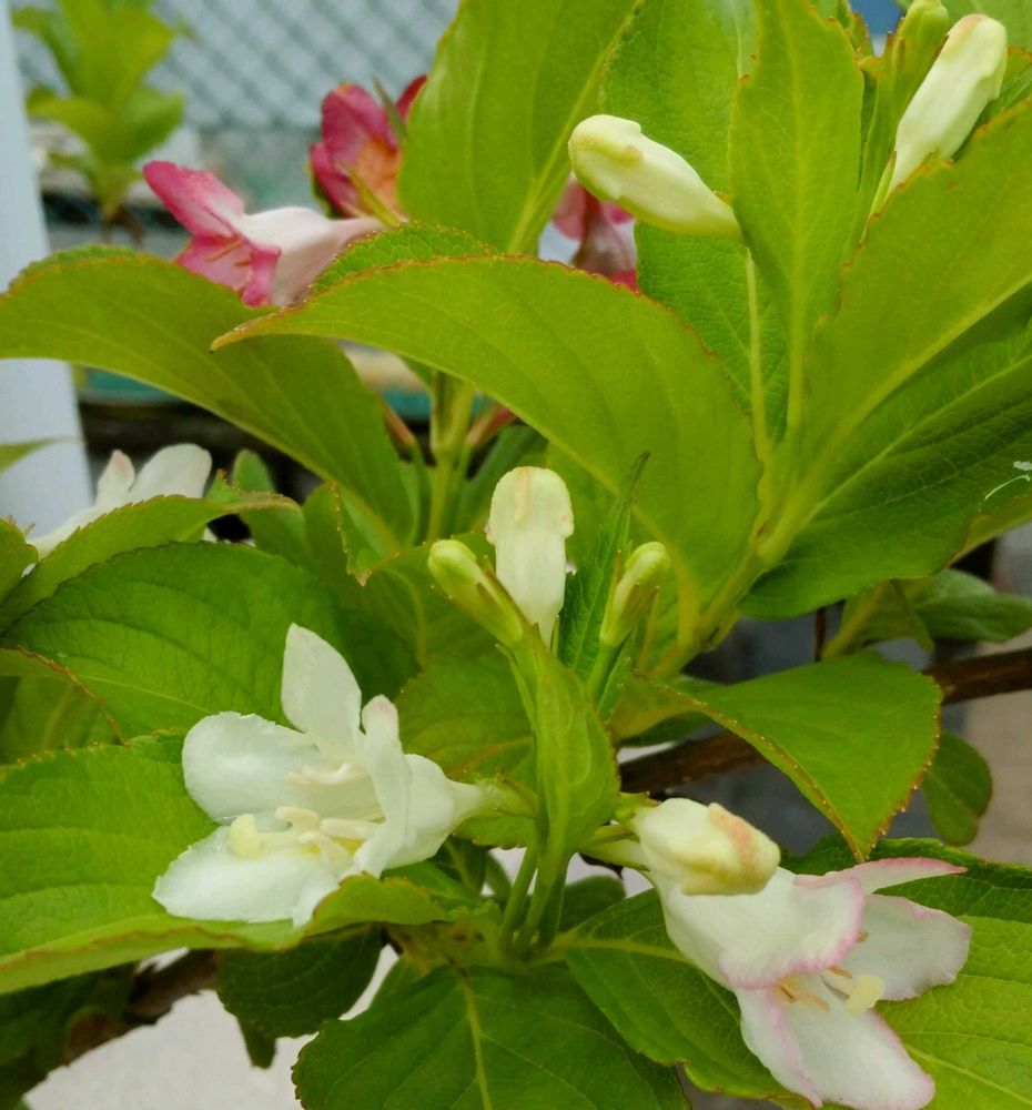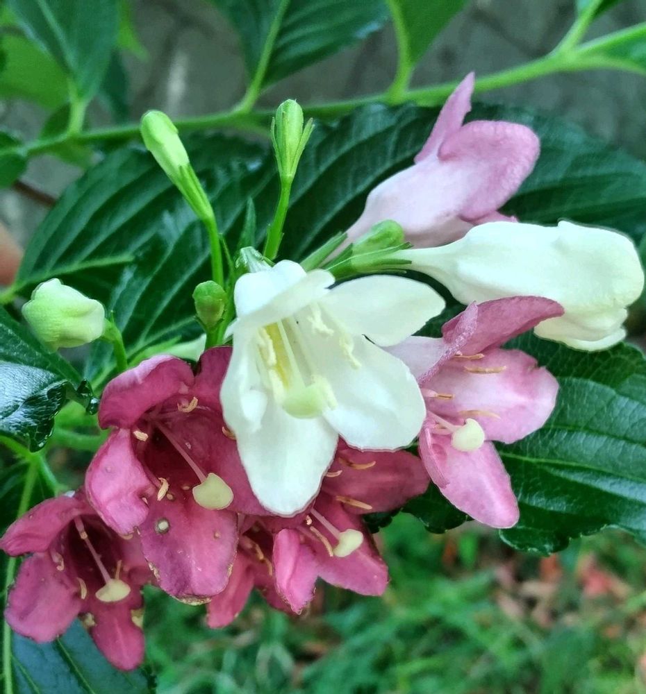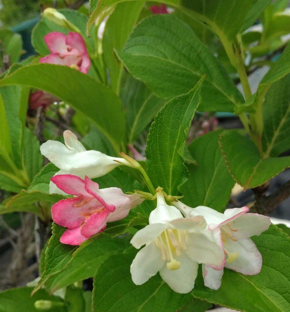 1本の木に白やピンクやローズの花が混じって咲いていて、ハコネウツギと言う名前を知ったのもこの植え込みでした💞