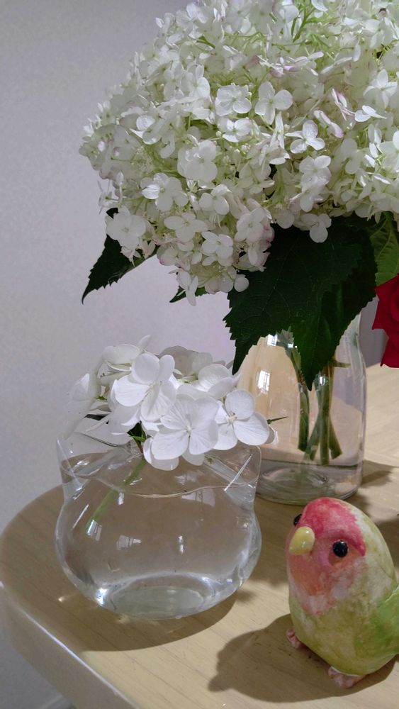 折れてしまって残念ですが、真っ白なアナベル活けても素敵です💓