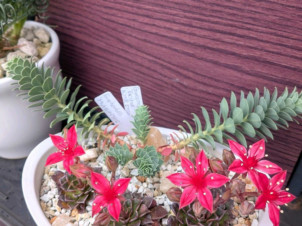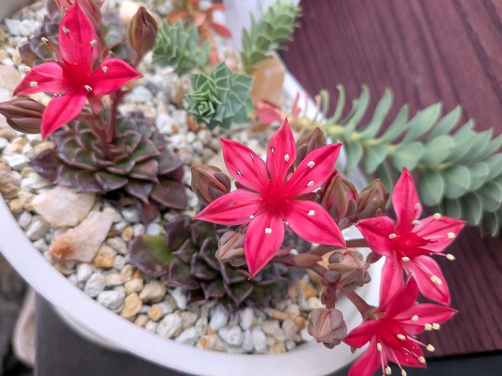 グラプトペタルム キングスターという品種を初めて知りましたが、小柄なのにくっきりした赤色の花がとても綺麗です🥰