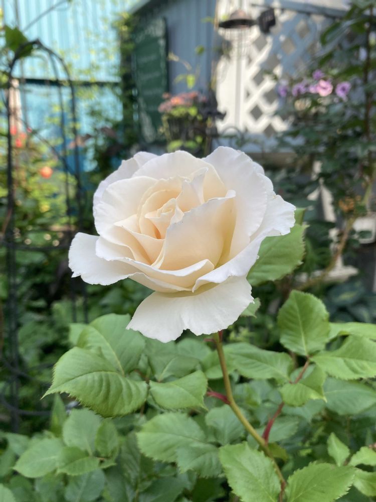 駐車場脇に4畳半ほどの小さな庭しか有りませんが 薔薇 ・クレマチス・アジサイなど 北国でも越冬してくれる宿根草を中心に育てています 半数近くは鉢植えです 角に葡萄の木が有り 地面は狭くてもバーゴラに這わせ日陰の役目を果たしてくれ秋には実ります(一石二鳥) 狭いながら薔薇 地植え10本 鉢植え13本 クレマチス 地植え 8本 鉢植え 2本 アジサイ 地植え 4本 鉢植え 8本 他 ギボウシなども有り 短い夏を楽しんでいます 2025.5.28 現在 我が家で咲いたディスタントドラムスが アンティークに変身が見事👍 この薔薇を見てから薔薇への興味が湧きました GS 2019.7. 1 より開始🙇