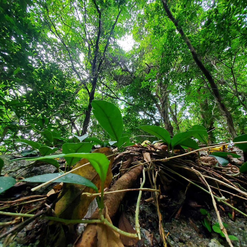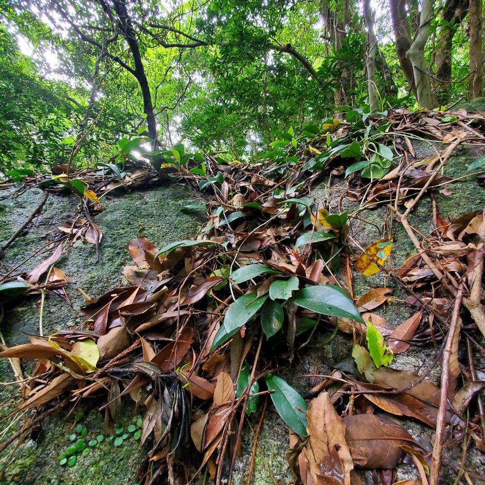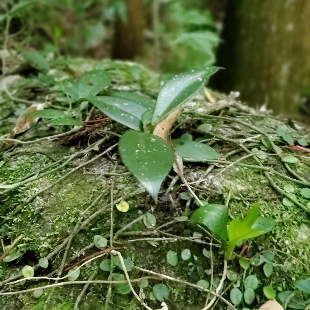 大岩の上に自生のサクララン(ホヤ)。光が差さないので花座はありません。
