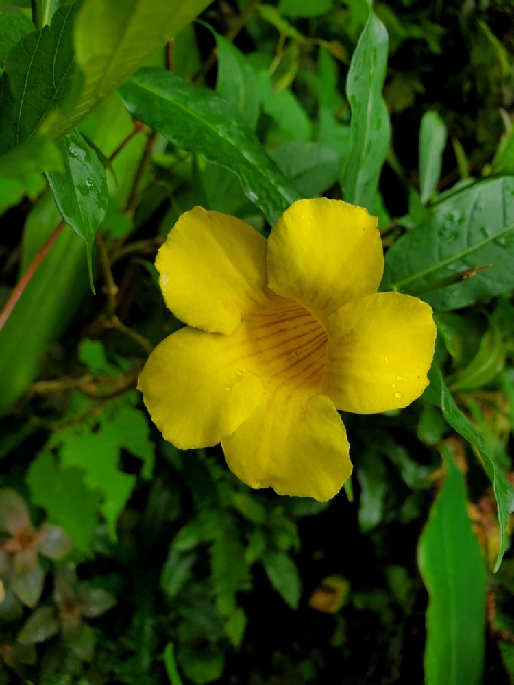 アラマンダ、お花が一つだけ。挿し木をしておかなければ消えてしまいそう。