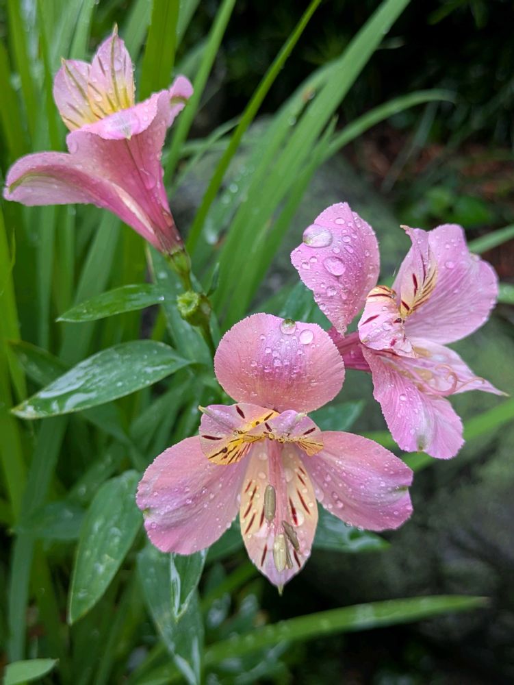 雨に濡れるゼラニウムと、アルストロメリア(*'▽'*)♪