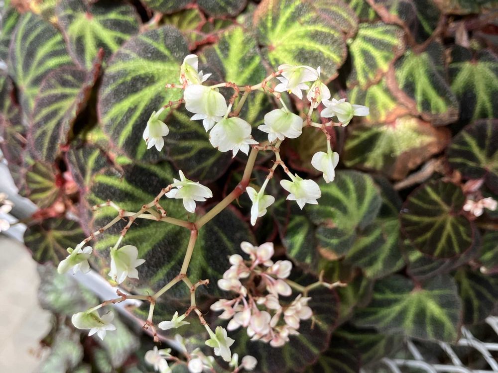 ベゴニアの花は葉の派手さとは反対に可憐な花が多い