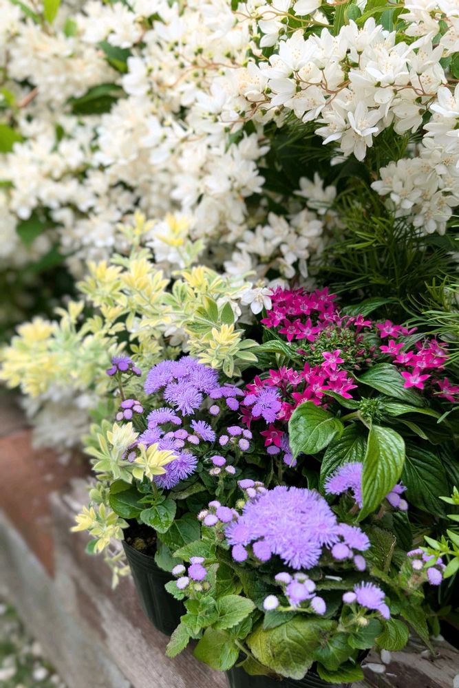 1⃣散り始めたヒメウツギ🤍と新しくお迎えしたプチプラ苗を寄せて✧p📷qω•,,´)パシャ✧