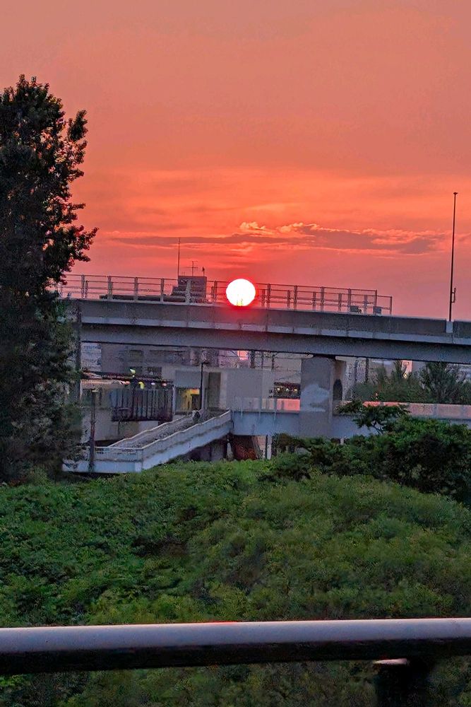 大きな太陽が陸橋の上を転がっていくようで面白かった(,,>᎑<,,)