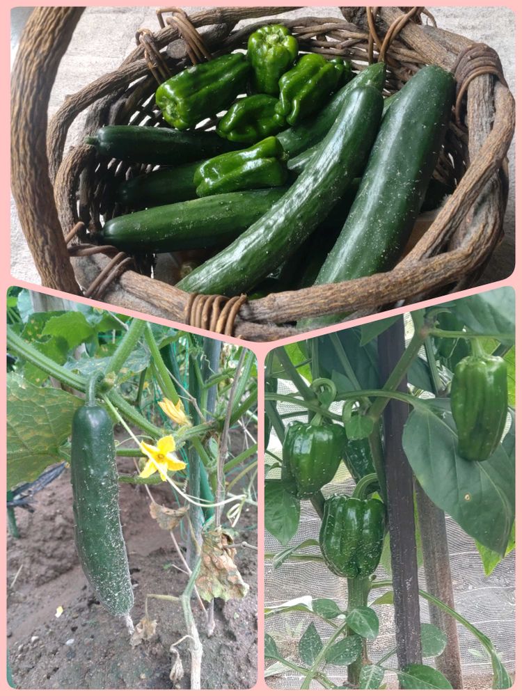 🍑収穫中🫑🍅🥒🌽🍆