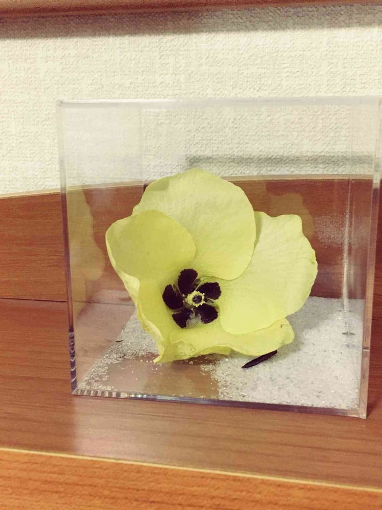 オクラの花のドライフラワーを今日シリカゲルから取り出しました。