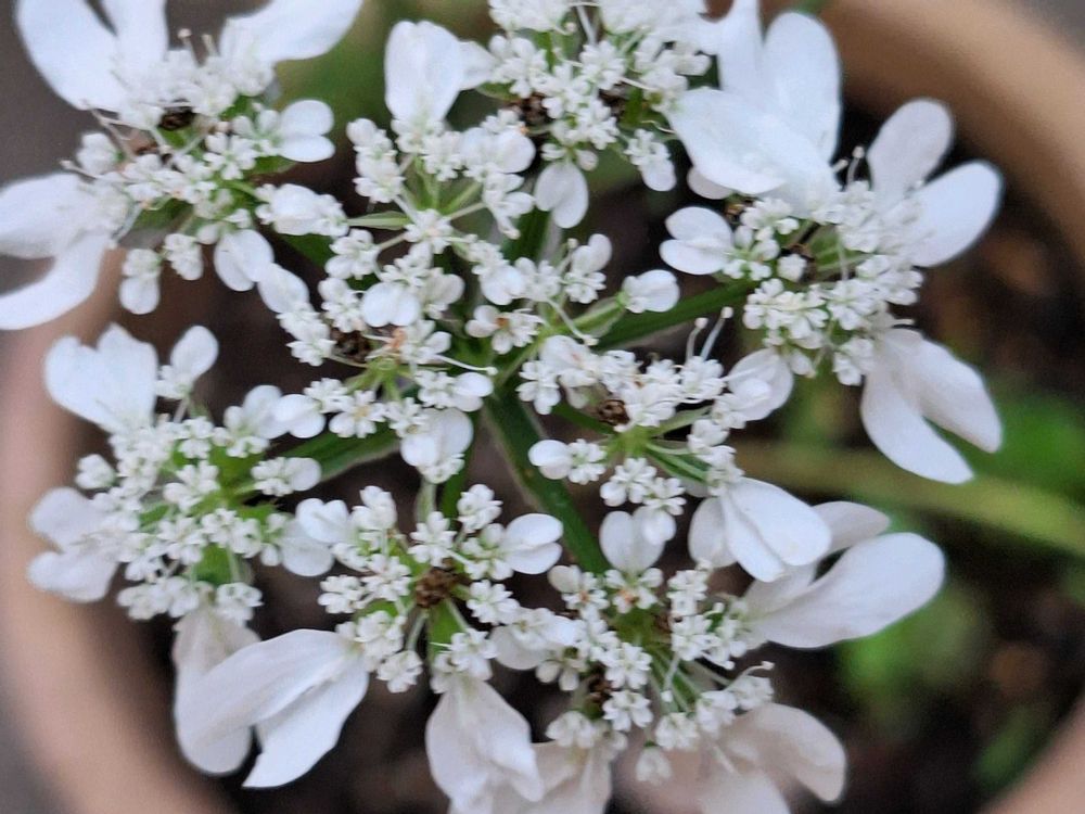 そしたら草取り損ねたところにオルレアの花が咲いてるのを見て葉っぱが同じのを知り鉢のものも楽しみにしてました😊