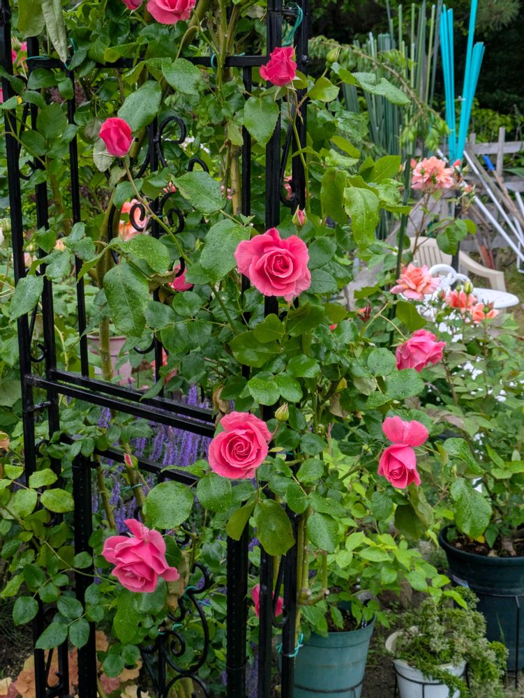 ラビーニアは耐病性は劣るけど真夏でも繰り返し咲く品種。軽めの花で花枝長め。アーチには向かないなあとライオンハートと入れ替え予定なんです、実は🥹