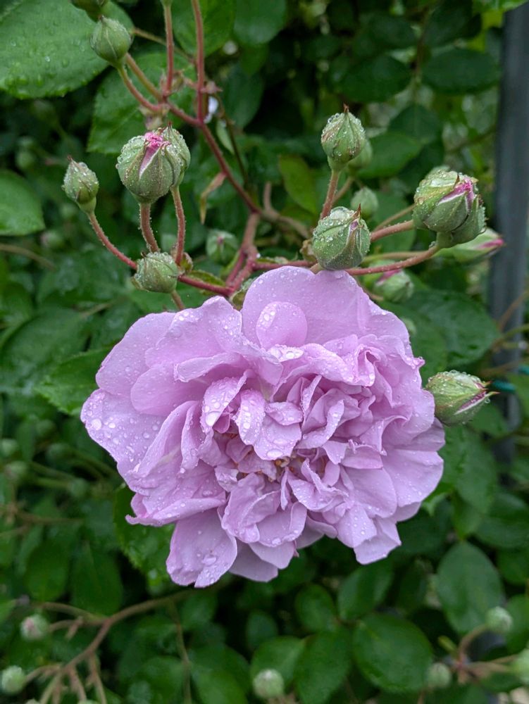 今日の天気がよく似合うレイニーブルー✨雨の雫が一番似合うバラ✨💕あ、でも黒星病弱いから明日速攻消毒かも😅