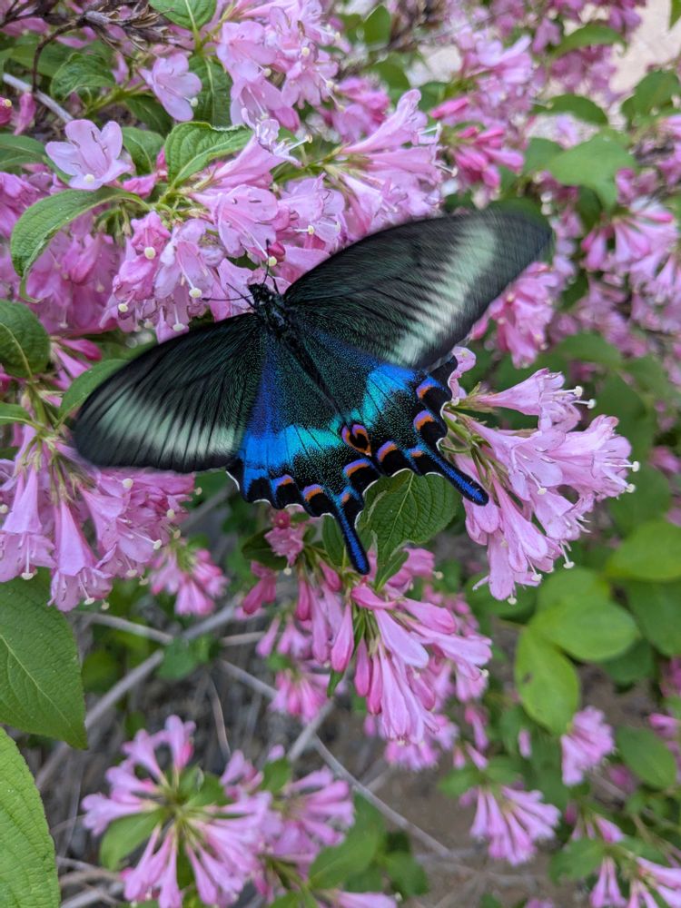 今の時期は見られやすい蝶です。キアゲハより大きくて黒い蝶がいたら気にして見てください☺️