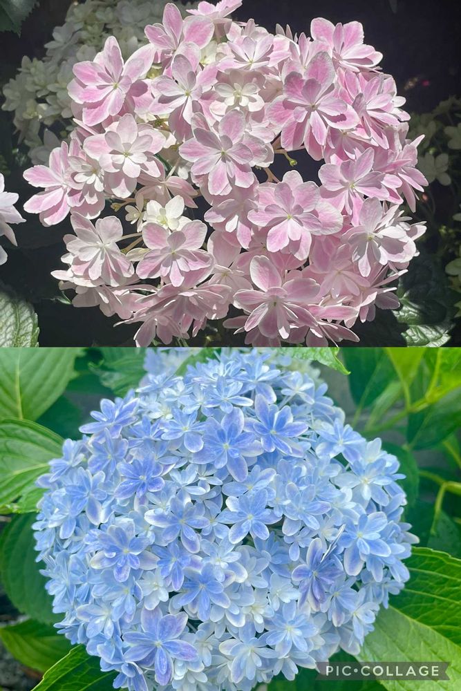 ピンクが親株、毎年水色系で咲いてたのに、あげていた肥料も赤色肥料じゃないのに、ピンクが咲きました💗これも美しい✨