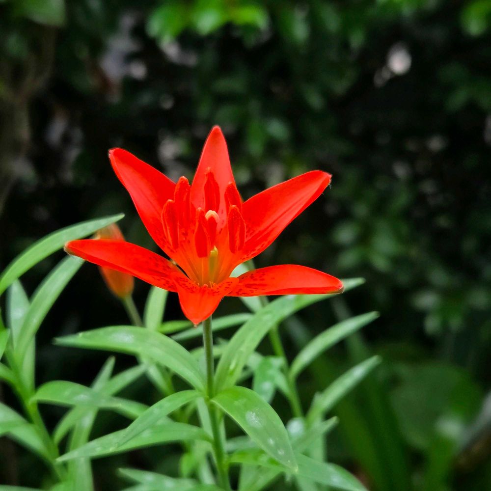 先日投稿したミチノクヒメユリ(夫婦ユリ)に続いて朝鮮ヒメユリが開花しました!