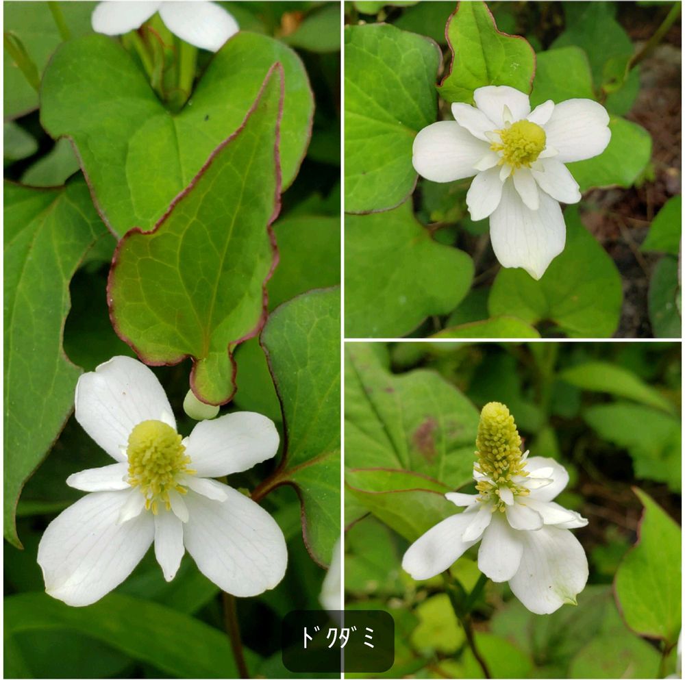 八重のドクダミ??と言えども白い花弁でなくて、葉が変化した総苞片。