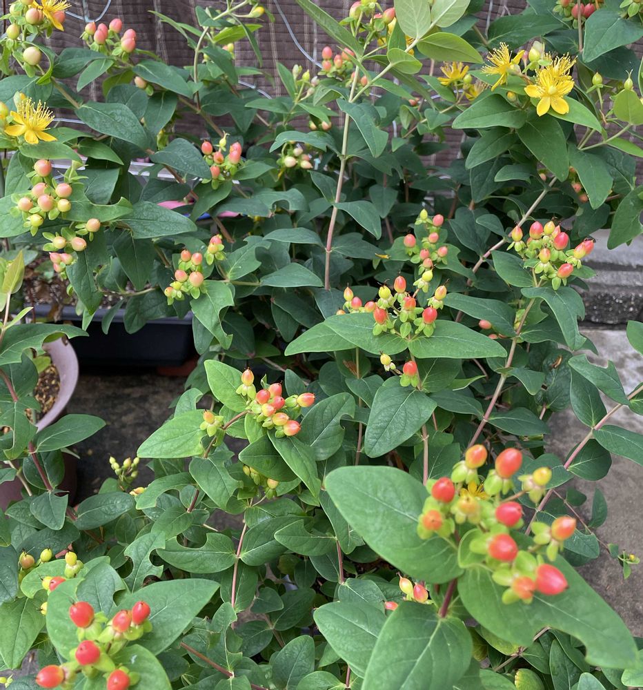 一年が過ぎ、生協のチラシを見て〖ヒペリカム〗と名前を知った😅
