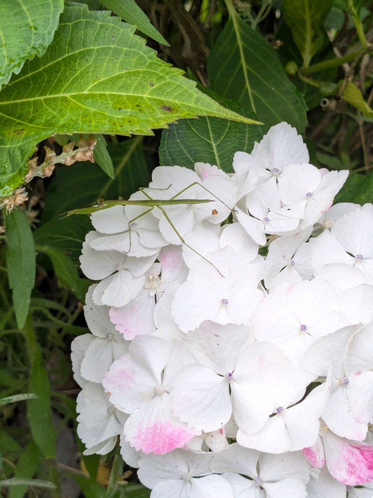 ②アジサイには、小カマキリ