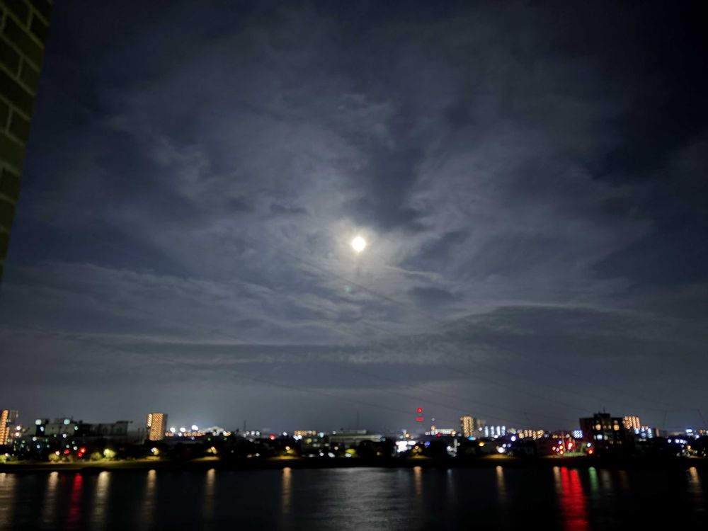 夜ベランダのカーテンを開けるとストロベリームーンが輝いてました