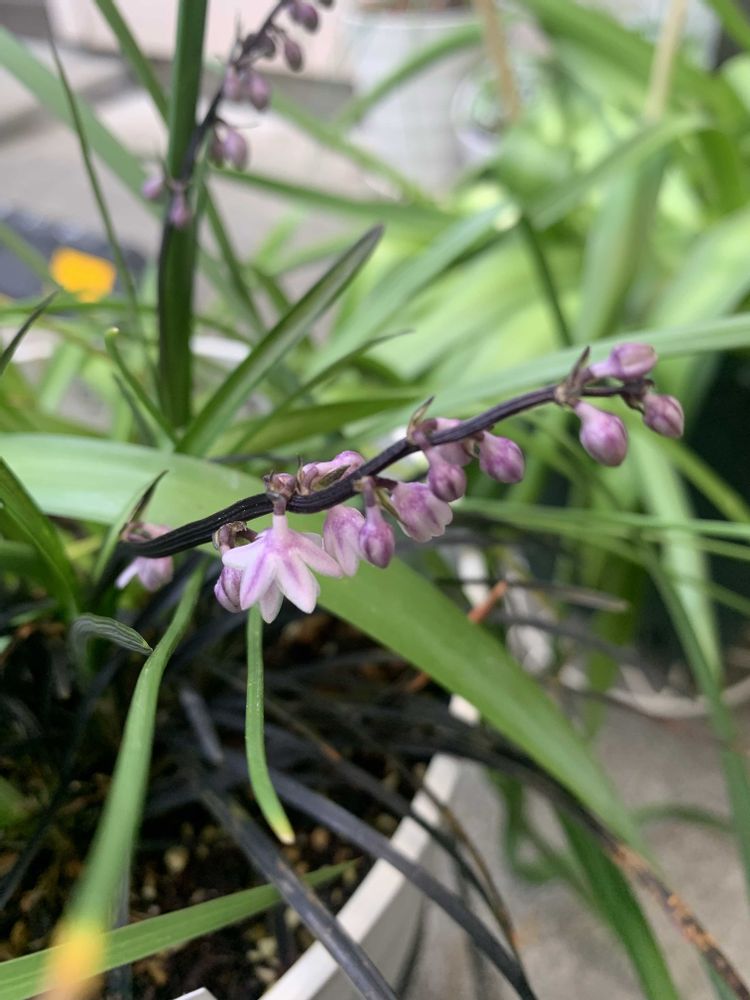 黒い葉からは想像もしていなかったかわいい花が咲きました