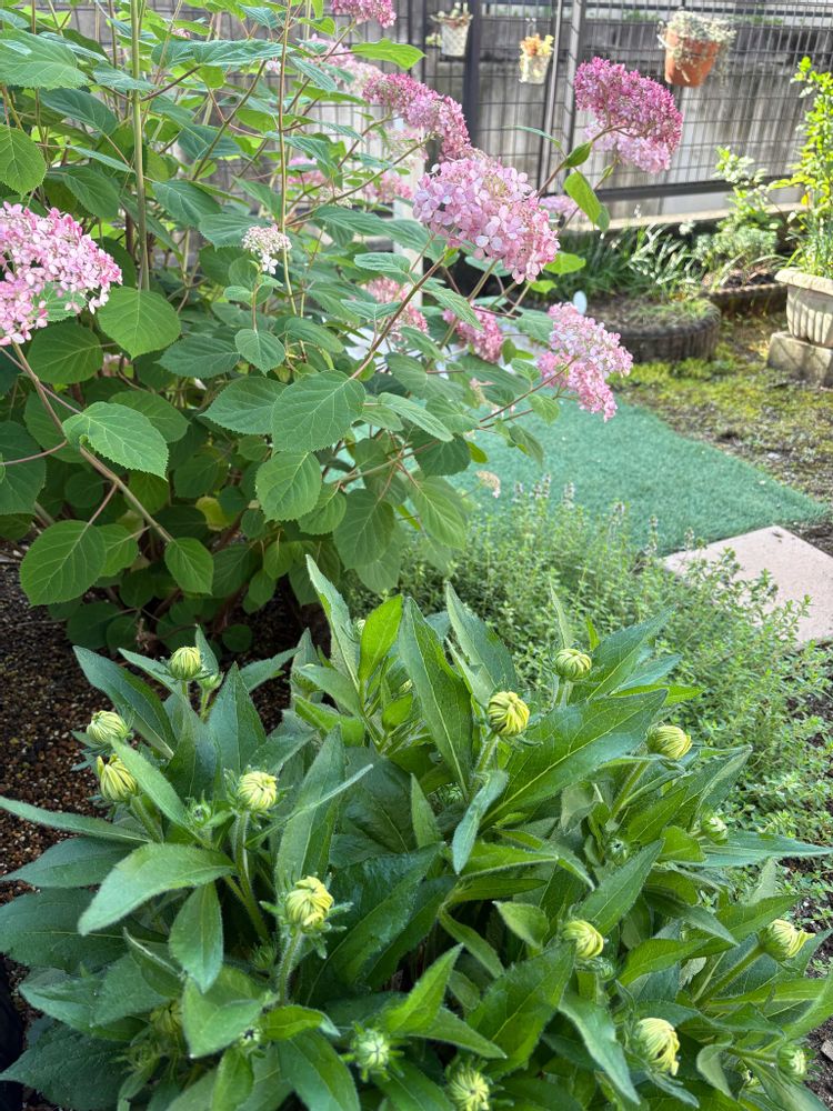 ルドベキアとエキナセアの勾配種だけあって、ちょうどその中間の時期に咲きそうです。