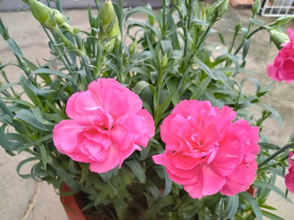 昨年、貰ったカーネーション、鉢は植え替えしてますよ。冬もハウス(暖房なし)で越しました。