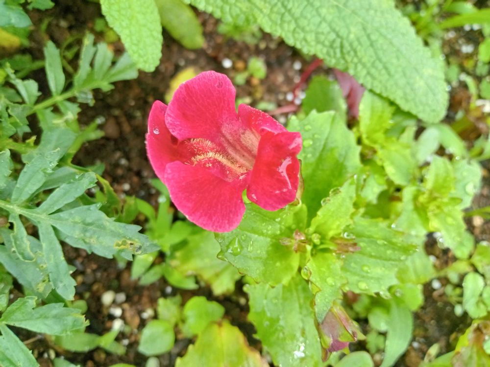 ミムラス、カット✂️した枝を土にぶっ刺しといたら、︎花咲いたよ。
