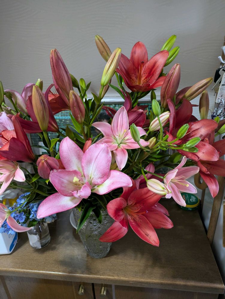 我が家のあじさい娘と頂いたユリの3日後の様子です
