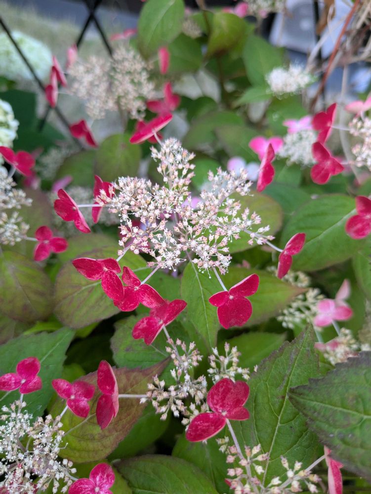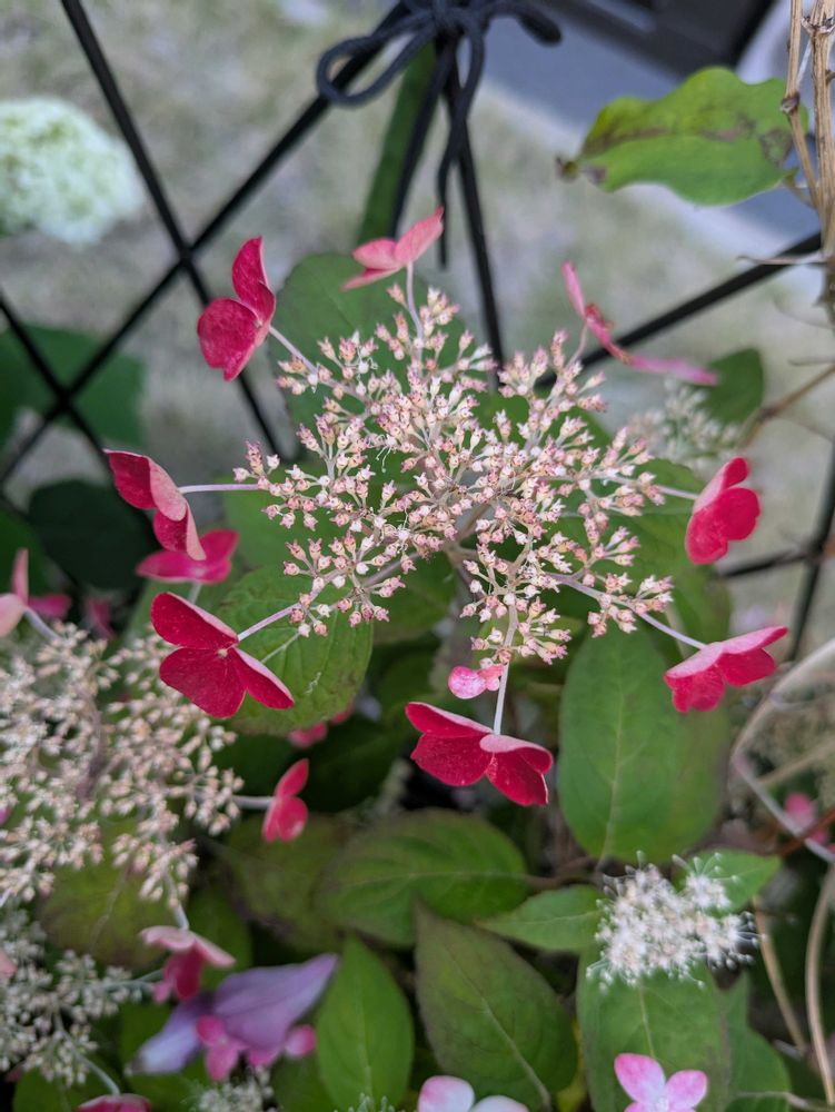 山アジサイ 紅 真っ赤になって、花びらが反ってきました。