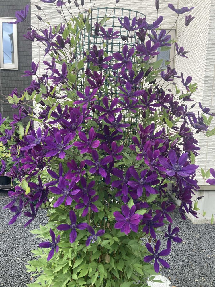 とっても濃い紫で、花形も美しく、お気に入りのクレマチスです♪