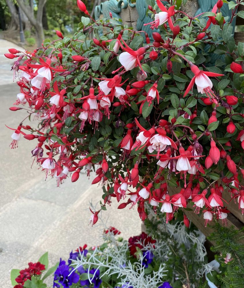 この紅白のフクシアさん✨