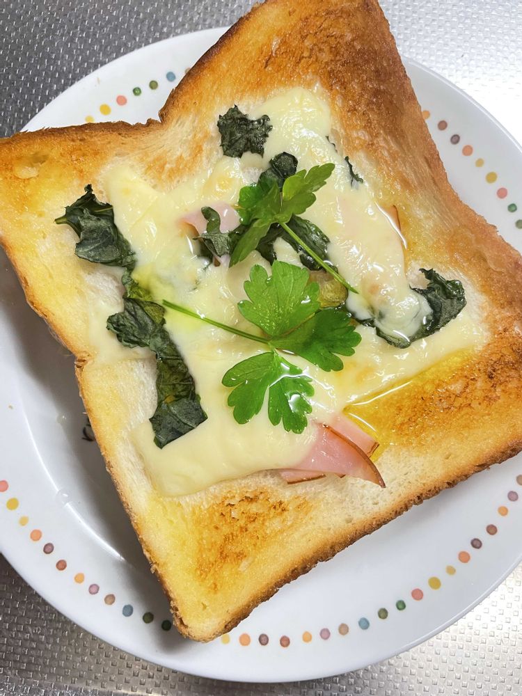 5️⃣ 今朝はトーストにバジルとイタリアンパセリ🌿を使って