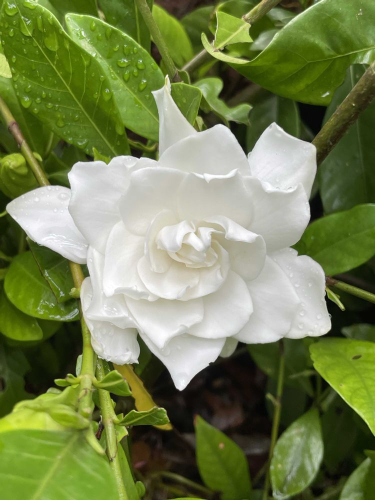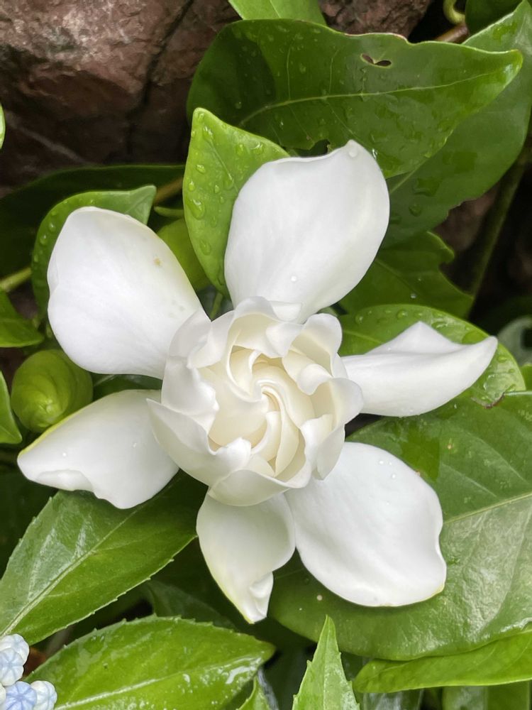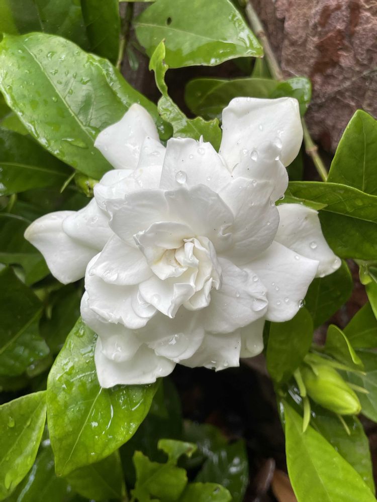 今朝、八重咲きのクチナシのお花が3輪咲きました😊