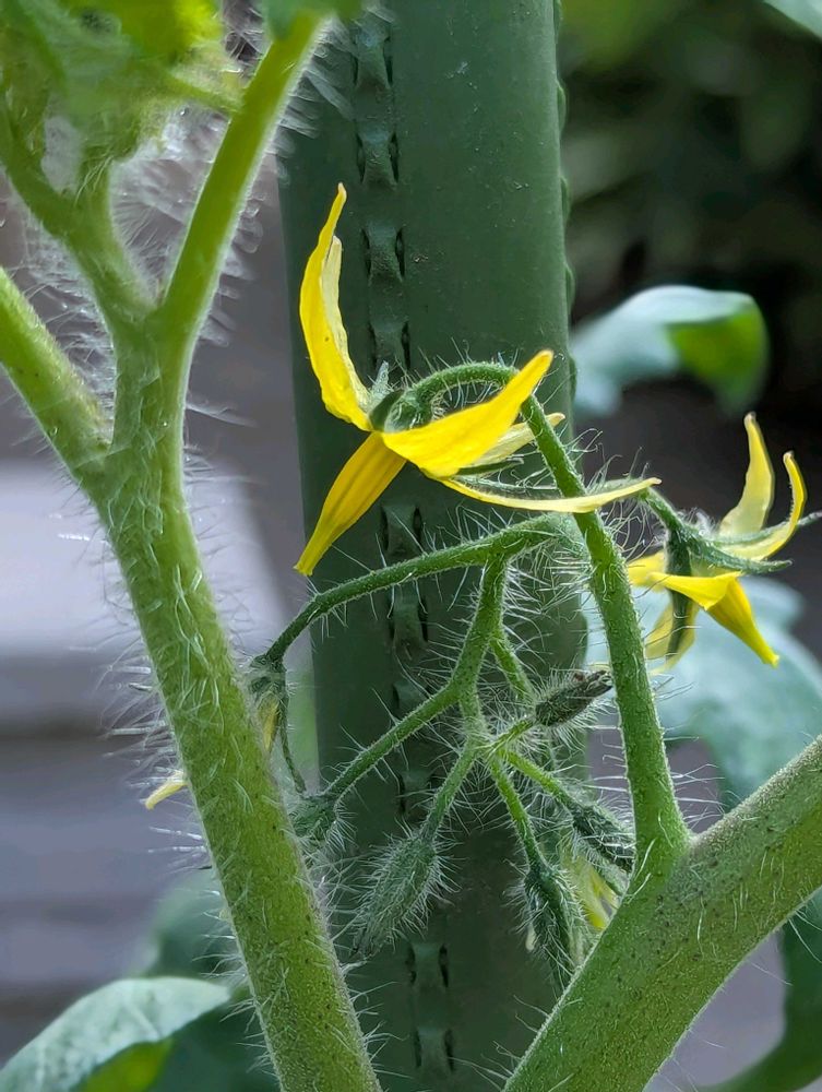 ご近所さんに頂いたトマトの苗が大きくなりお花が咲きました✨
