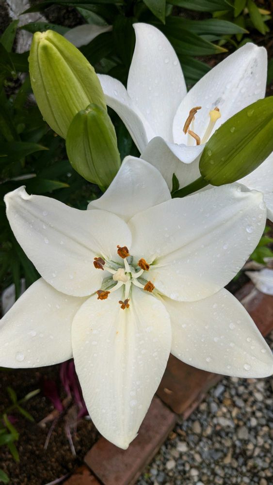 今日☁️わが家で咲いているスカシユリ❤️🧡💛🤍です❣️💕😉
