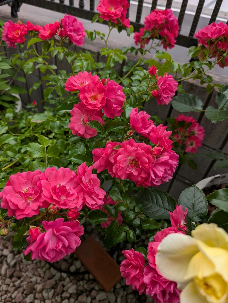 たくさん咲いてきました!👏バラとしてあまり手をかけずに普通のシュラブの感覚で育ててるのですが、モリモリ育って勝手に咲いてくれます。