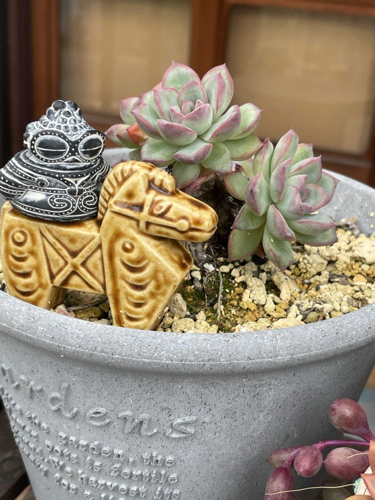 以前娘とおもしろがって買ったガチャの土偶さん。