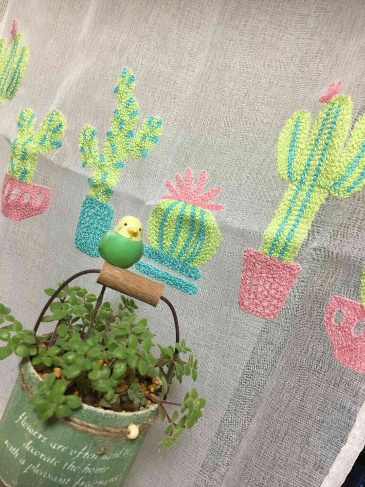 後ろには、3coinsにあったサボテンののれん?!みたいな半分サイズの物です。