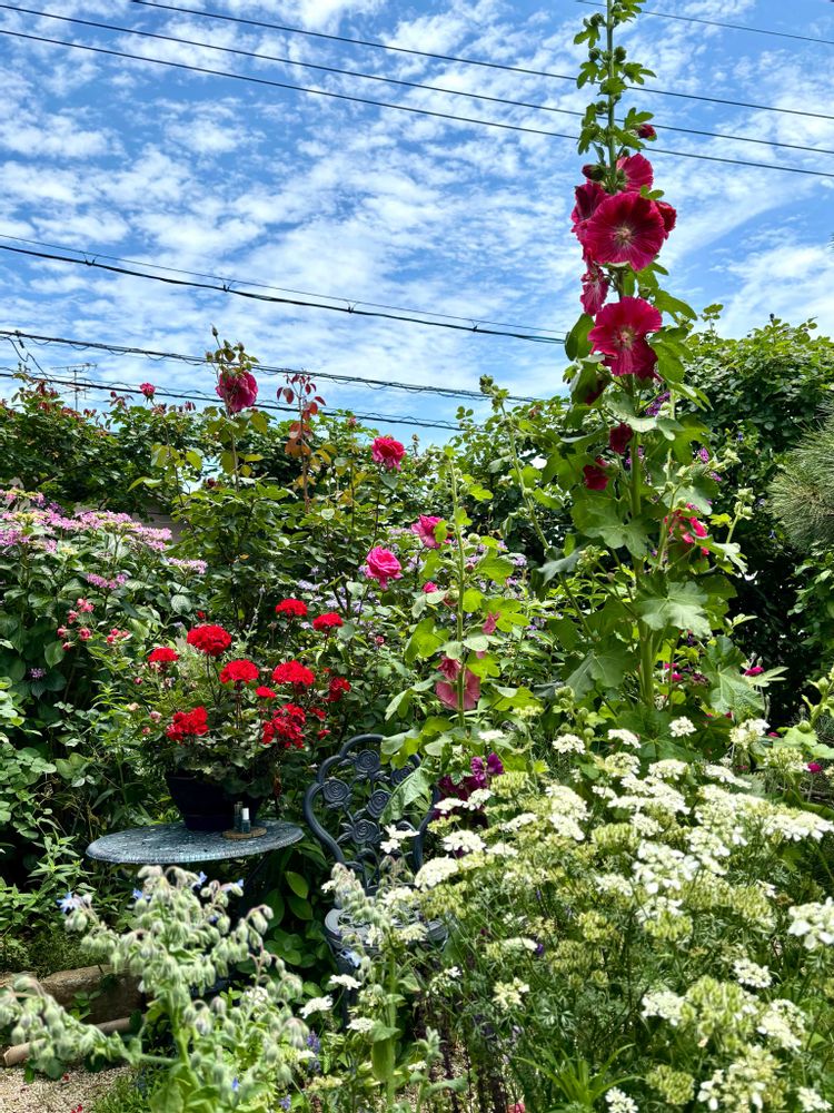 ☀️梅雨の晴れ間✨夏立ちぬ今日の庭🌸立葵の花姿に夏を感じます❣️庭の紫陽花が綺麗な季節です😍💕